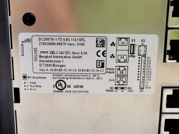 - Typ urządzenia: Panel HMI-PLC (sterownik z panelem operatorskim) firmy Berghof