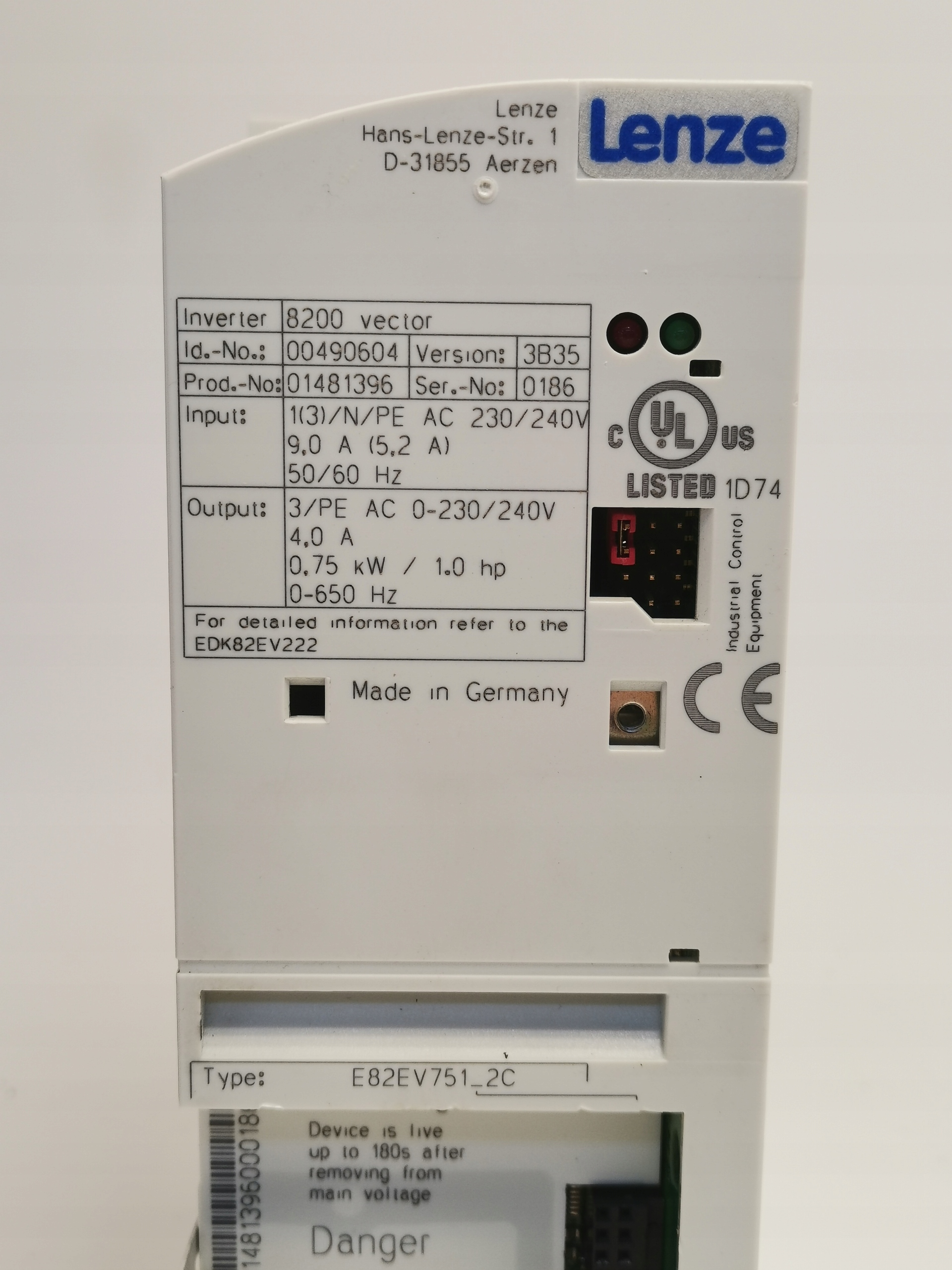Falownik Lenze 8200 Vector E82EV751_2C 0,75kW, 4A, 230V (A2/69)