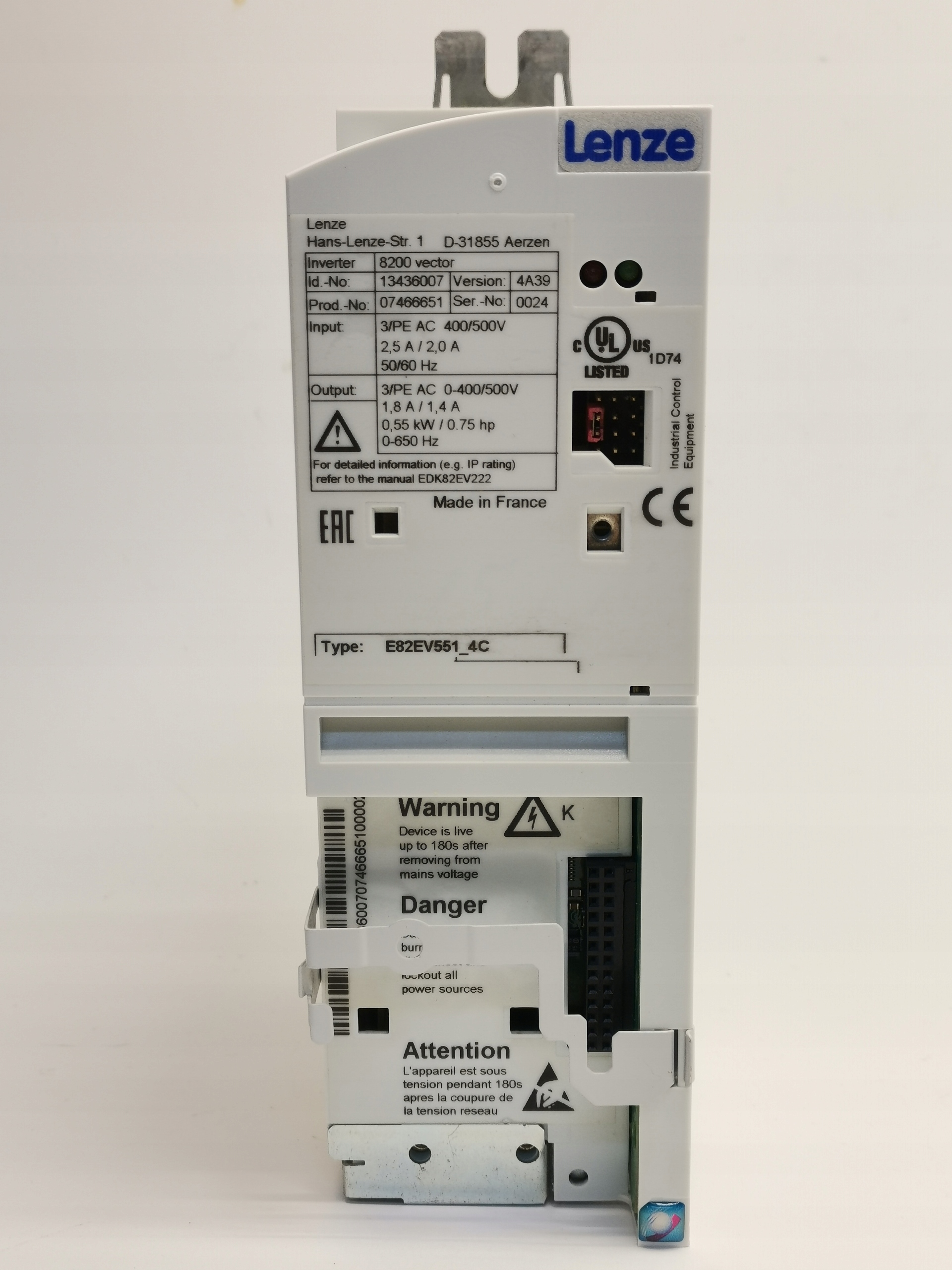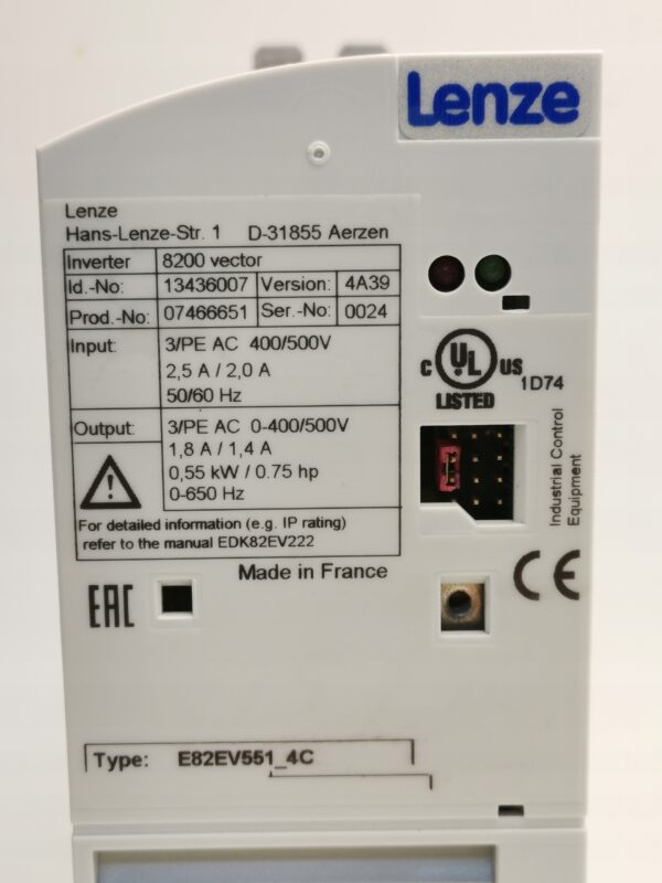 This item: Falownik trójfazowy Lenze E82EV551_4C 0,55 kW 1,8 A (A2/60B)