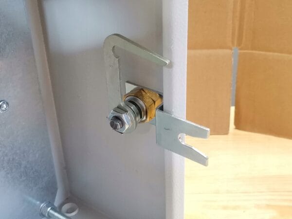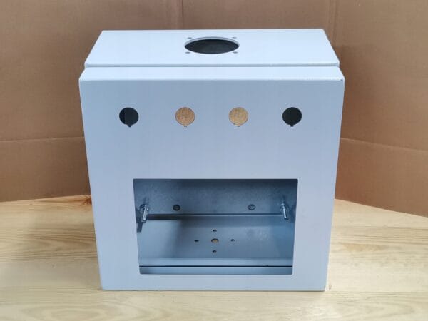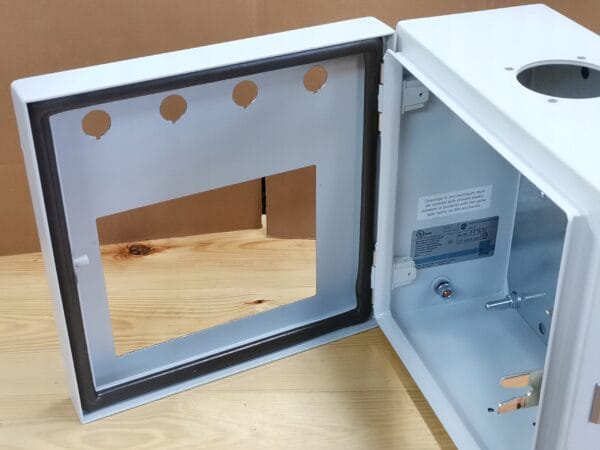 Stan: w drzwiczkach wycięty prostokąt: 198 x 142 mm, 4 otwory 22 mm