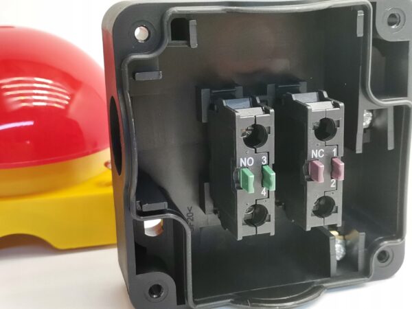 Przycisk ręczny i nożny czerwony bez samopowrotu